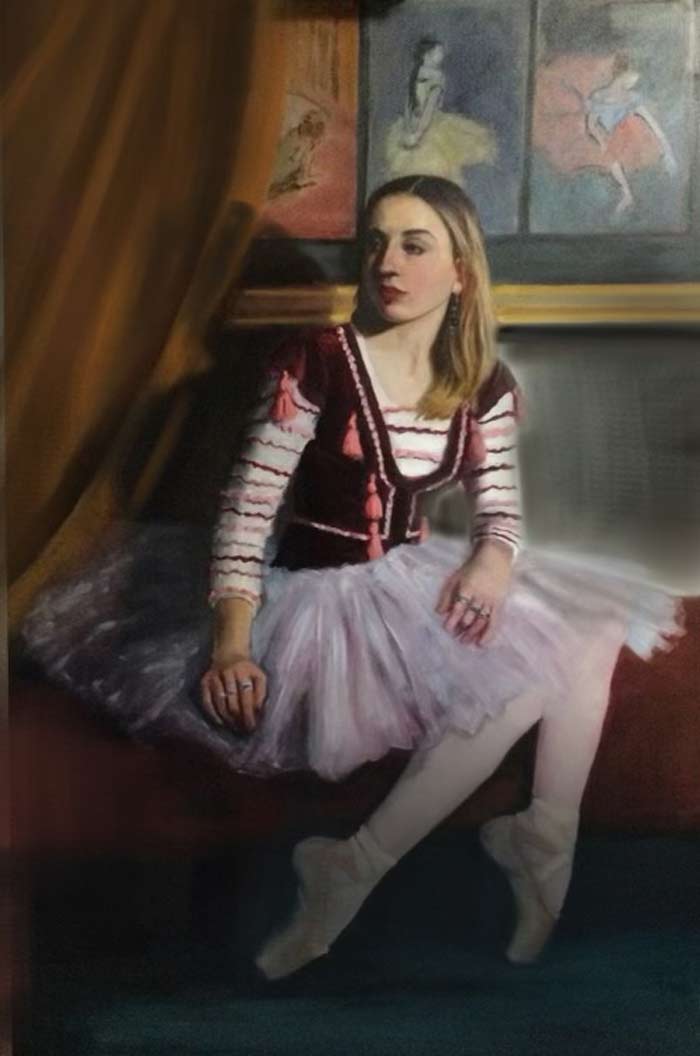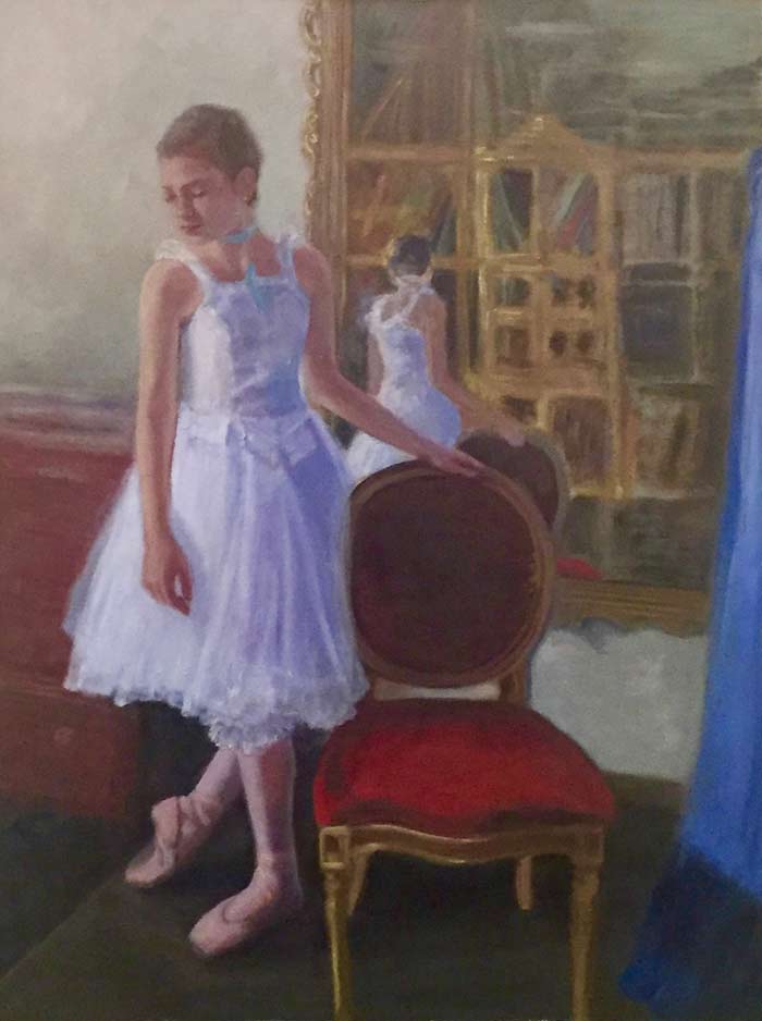 I have continued to work on drawing and painting. These are two examples of large paintings I did in oil on a 4×5′ canvas. The first piece is decorating the ballet studio where I work as did the second until it sold. The two girls were students of mine at the studio and were started from life and completed from photographs. I am very glad I invested in the Drawing Academy course several years ago. It has been an incredible resource for me and I continue to view the videos and do exercises from the content. It’s amazing!