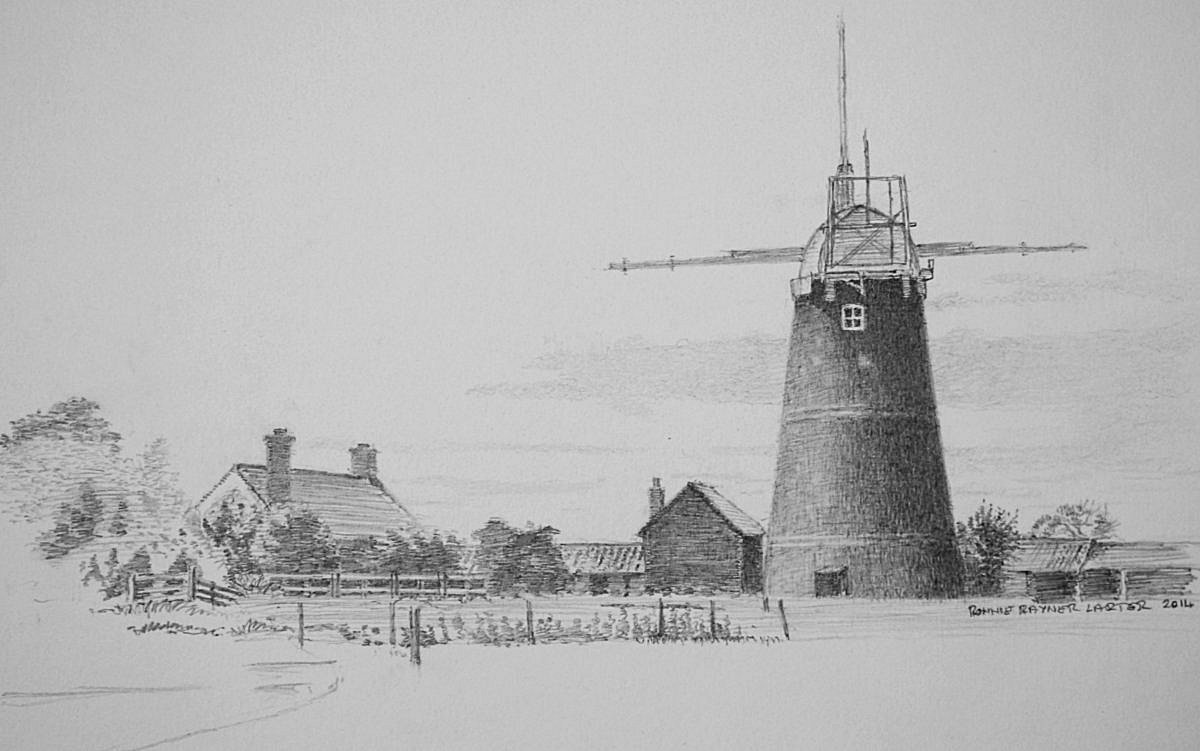 This drawing is of a windmill a few miles from my home. I completed a few days ago using the hatching technique. To create a sense of restfulness I used horizontal hatching for all buildings, trees and sky, but for the windmill I used cross-hatching, which I felt gave it a sense of solidity.