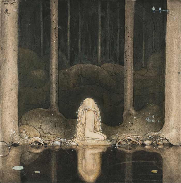 John Bauer – Princess Tuvstarr Gazing Down Into The Dark Waters Of The Forest Tarn