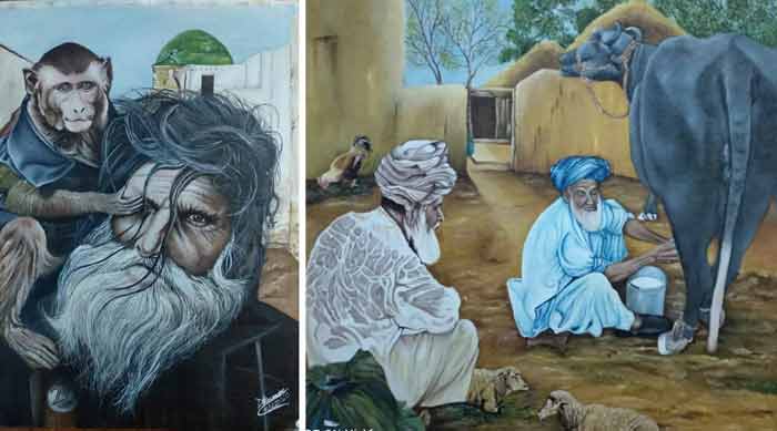 I didn’t know exactly , maybe the color contrast and depth of his paintings sprouted my inner art abilities during my early ages of drawing because I often spent my leisure time lying on my bed to watch paintings of Sohni Mahiwal, which was gifted by someone to my parents.